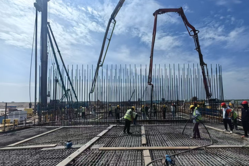 6月27日上午6時28分,隨著混凝土緩緩注入新北閘1#閘室底板倉面,淮河入海水道二期海口樞紐工程拉開了主體結構鋼筋混凝土施工序幕。首塊閘室底板澆筑歷時8小時連續(xù)作業(yè),累計澆筑混凝土626立方米,標志著工程建設進入快車道。