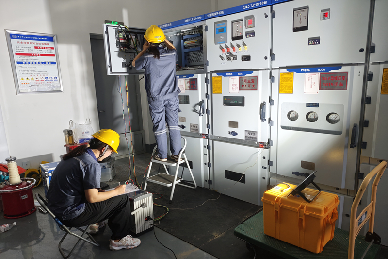 高溫高濕天氣,悶熱的配電間像個(gè)密不透風(fēng)的蒸籠,面對(duì)停電作業(yè)的艱苦環(huán)境,試驗(yàn)團(tuán)隊(duì)以毫厘不差的精準(zhǔn)把好精品關(guān)、嚴(yán)格關(guān),堅(jiān)決筑牢品質(zhì)防線。高壓試驗(yàn)組扛著沉重的試驗(yàn)儀器在配電間穿梭,儀表檢測(cè)組面對(duì)數(shù)量大、型號(hào)多的各類型儀表逐一檢測(cè)并認(rèn)真核對(duì)數(shù)據(jù),消缺小組踩著泥濘登高作業(yè),連續(xù)多日轉(zhuǎn)場(chǎng)作戰(zhàn),日均工作超12小時(shí)。團(tuán)隊(duì)里兩名首次參與試驗(yàn)的女試驗(yàn)員也毫不示弱,和男試驗(yàn)員一道鉆進(jìn)悶熱的配電間,專注完成3套繼電保護(hù)裝置及105只電氣儀表的校驗(yàn)工作,校驗(yàn)結(jié)束后又主動(dòng)加入高壓試驗(yàn)和問(wèn)題整改中,用細(xì)致與堅(jiān)韌展現(xiàn)著別樣力量。整個(gè)團(tuán)隊(duì)用鋼鐵般的意志攻克一個(gè)又一個(gè)技術(shù)難題,以實(shí)干擔(dān)當(dāng)為設(shè)備安全運(yùn)行保駕護(hù)航。