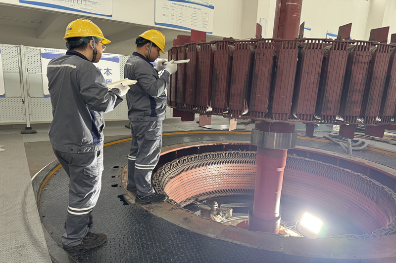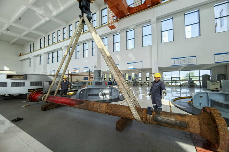 本次大修關(guān)鍵任務之一,是將原有的液壓調(diào)節(jié)器升級改造為新型的“上置式同步液壓調(diào)節(jié)器”。新系統(tǒng)高度集成化,優(yōu)化了空間布局,解決了以往受油器漏油、保壓難等問題,讓后期維護時的部件更換效率提升50%。在調(diào)整機組軸線擺度時,成員趴在滾燙的機座旁進行反復校準,面對葉輪外殼的氣蝕傷痕,他們一寸寸精心打磨、修補,直到金屬表面恢復平滑;精準微調(diào)墊片厚度,將測量精度嚴格控制在0.01mm;檢測導葉體水平度時,水平儀氣泡被穩(wěn)穩(wěn)的停在0.02mm精度范圍內(nèi)。在關(guān)鍵工序驗收環(huán)節(jié),管理和施工雙方共同到場、聯(lián)合驗收,對每道工序質(zhì)量標準進行嚴格確認,為后期維護和安全運行提供更有力的保障。